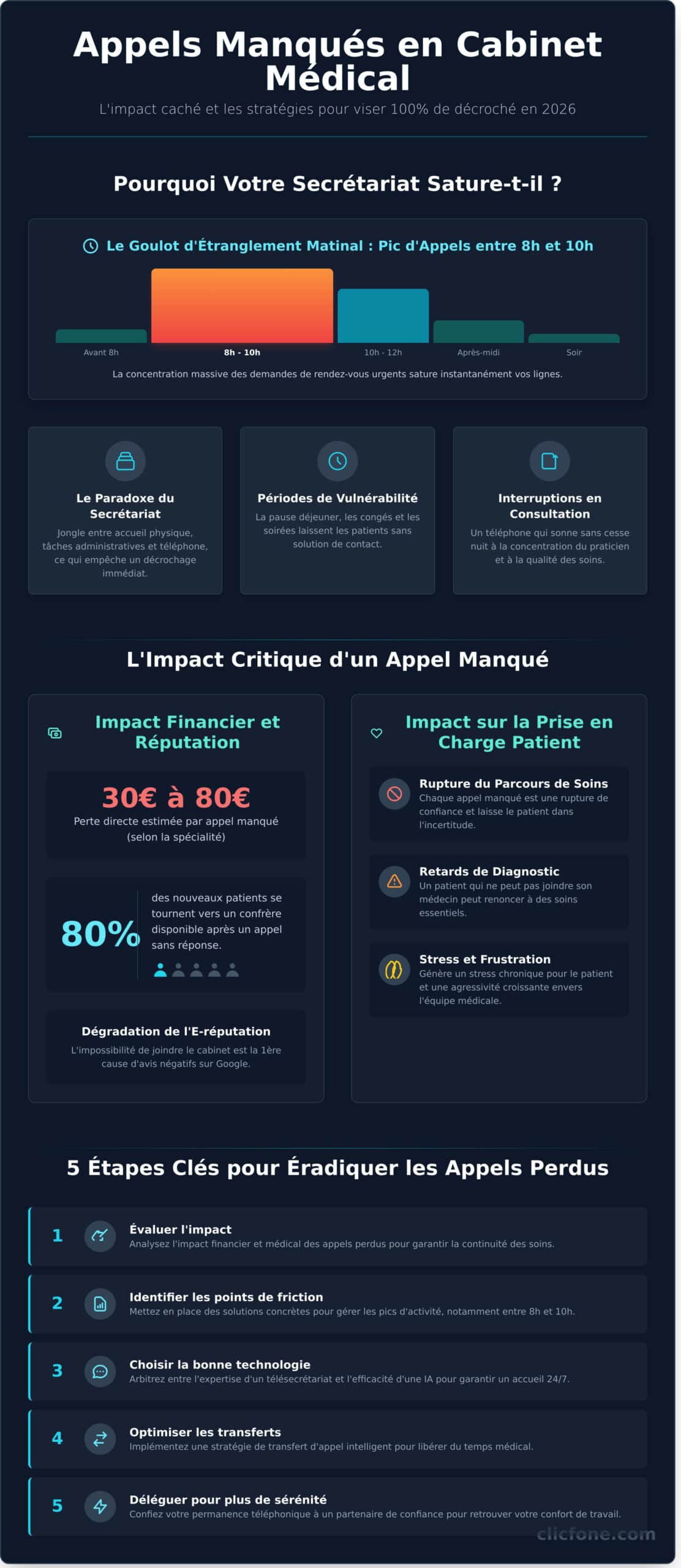 Comment réduire les appels manqués en cabinet médical Guide complet 2026 – Infographic Comment réduire les appels manqués en cabinet médical Guide complet 2026 Infographic